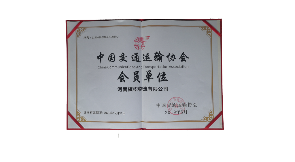 河南旗幟物流有限公司,(簡稱旗幟快運(yùn)),于2019年六月正式被中國交通運(yùn)輸協(xié)會(huì)列入中國交通運(yùn)輸協(xié)會(huì)會(huì)員單位,并頒發(fā)交通會(huì)員協(xié)會(huì)會(huì)員單位榮譽(yù)證書。