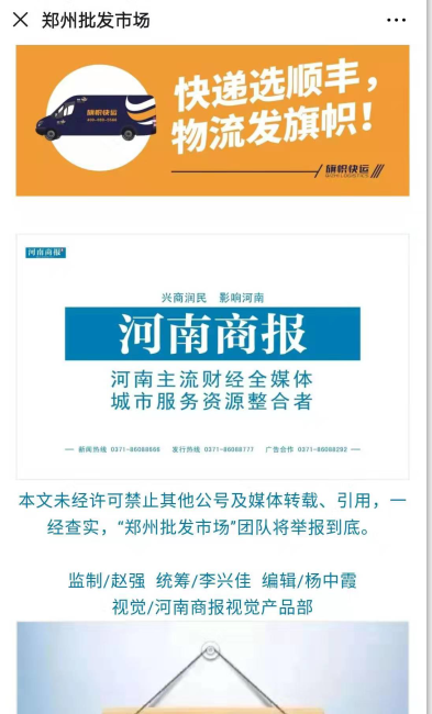 據(jù)悉,近日河南商報(bào)與河南旗幟物流有限公司(簡(jiǎn)稱旗幟快運(yùn))攜手達(dá)成合作。一方為河南新聞業(yè)內(nèi) 的佼佼者,另一方為河南物流業(yè)內(nèi)后來(lái)居上的翹楚。達(dá)成合作的他們,定將不斷奮力向前,為社會(huì)創(chuàng)造效益。