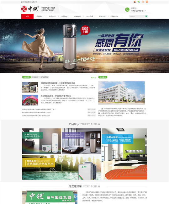 中銳空氣能新網(wǎng)站主要分為“資訊動(dòng)態(tài)”、“品牌中心”、“產(chǎn)品中心”、“經(jīng)典案例”、“熱水工程”、“招商加盟”、“服務(wù)支持”六大版塊內(nèi)容。在視覺上優(yōu)化了頁面布局和導(dǎo)航欄結(jié)構(gòu),并采用了新的KV設(shè)計(jì),更簡(jiǎn)潔大方;導(dǎo)航欄的明細(xì)分類將幫助您三步之內(nèi)精確搜索到需要的信息,快速瀏覽便捷省心;首頁大尺寸圖文展示公司動(dòng)態(tài)、產(chǎn)品中心、專賣店案例及企業(yè)形象等重要信息。