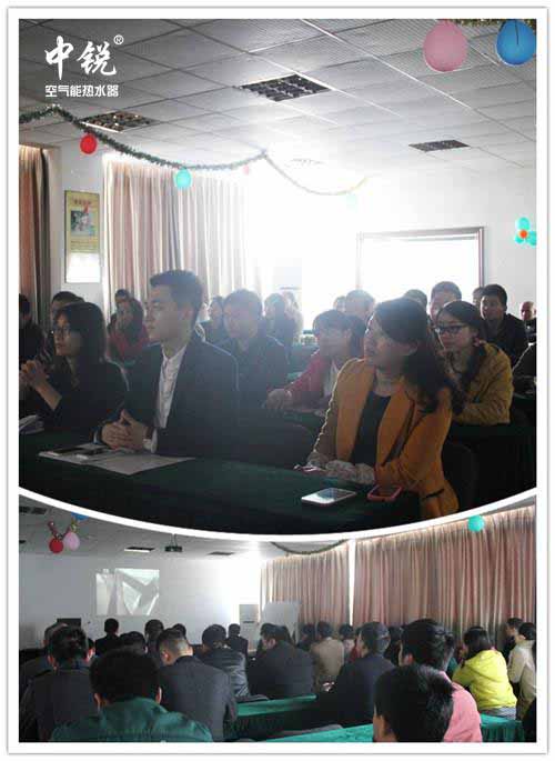 【中銳空氣能訊】2015年3月9日,新春伊始,中銳空氣能“堅(jiān)守夢(mèng)想,相約新能源的春天”為主題的2015春季動(dòng)員大會(huì)在中銳會(huì)議室舉行。葉世樂(lè)董事長(zhǎng)、鄧翔副總、沈旺火總監(jiān)等公司領(lǐng)導(dǎo)攜全體員工參加了會(huì)議,本次會(huì)議由企劃部主管黃明鳳主持。