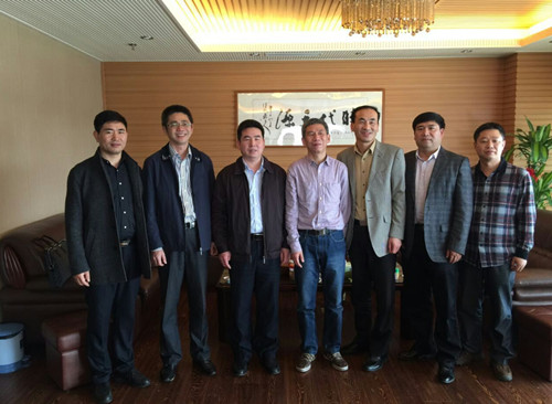 (葉世樂【左】與南平市經(jīng)濟(jì)和信息化委員會主任唐殷【中】及商會代表合影)
