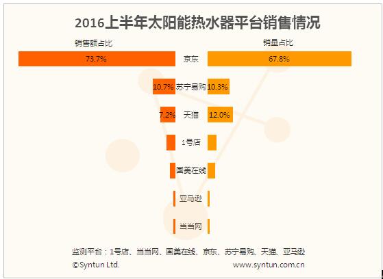 在熱水器整體線上市場(chǎng)上,京東份額比天貓高10%,在太陽(yáng)能熱水器市場(chǎng)上,京東的優(yōu)勢(shì)更加明顯。上半年,京東太陽(yáng)能熱水器市場(chǎng)份額為73.7%,天貓則僅有7.2%,甚至低于蘇寧易購(gòu)的10.7%??紤]到太陽(yáng)能熱水器的市場(chǎng)基本為三四線和更低線城市,京東良好的物流服務(wù)體驗(yàn)以及蘇寧易購(gòu)線下物流的優(yōu)勢(shì),為他們贏得了較高的市場(chǎng)份額。雖然太陽(yáng)能熱水器自家電下鄉(xiāng)起,提前透支了東部農(nóng)村地區(qū)的消費(fèi)能力,但西部地區(qū)仍然對(duì)太陽(yáng)能市場(chǎng)有較高的需求,有數(shù)據(jù)統(tǒng)計(jì),我國(guó)城鎮(zhèn)熱水器保有量為89.1%,而農(nóng)村地區(qū)僅為20%,因此在爭(zhēng)奪太陽(yáng)能熱水器市場(chǎng)的過(guò)程中,擁有良好物流服務(wù)體驗(yàn)的平臺(tái)將擁有更多優(yōu)勢(shì),獲得更多份額。